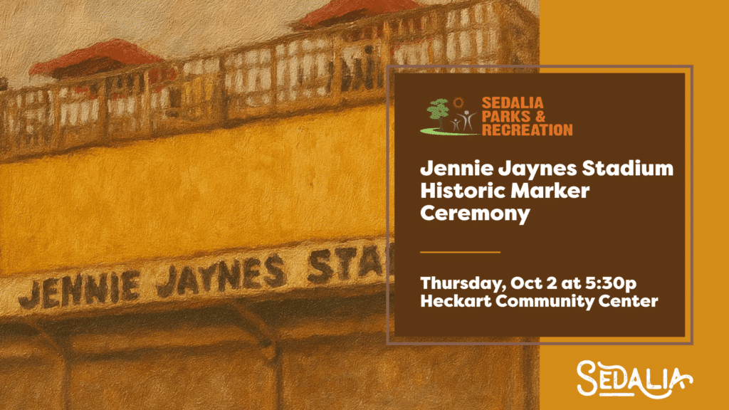 The City of Sedalia will honor the legacy of Jennie Jaynes Stadium with the unveiling of a historic marker on Thursday, October 2, 2025, at 5:30 p.m. at the Heckart Community Center lobby entrance. The public is invited to attend the ceremony, which is being hosted by the City of Sedalia’s Historic Preservation Commission in partnership with Sedalia Parks and Recreation.