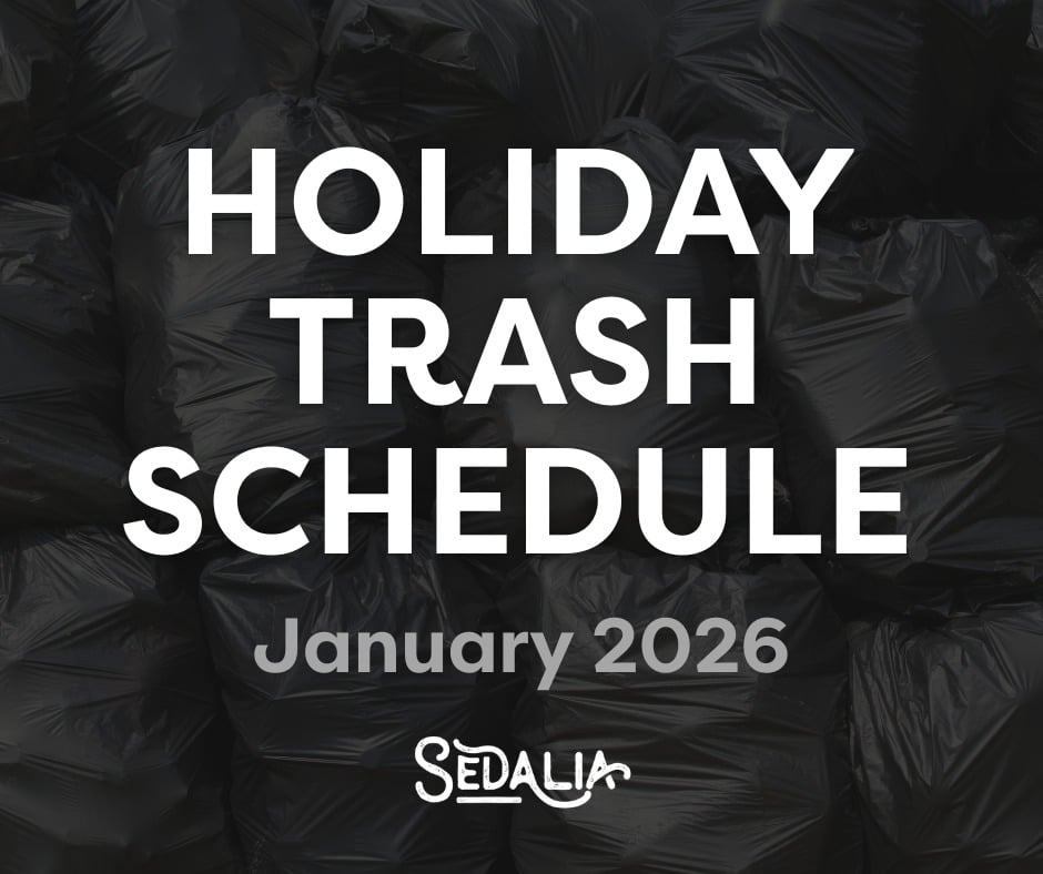 Residents should place their carts at the curb by 5:00 a.m. on their updated pickup day. Thank you for your cooperation, and we appreciate everyone helping keep Sedalia clean and running smoothly during the holiday season.