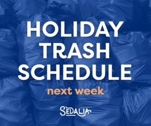 Beginning Monday, November 17 through Thursday, November 20, the City of Sedalia will temporarily close lanes from 7:00 a.m. to 4:00 p.m. daily to complete mill and overlay work. Work locations include: Drivers should expect minor delays, use caution when traveling through work zones, and follow all posted detour or traffic control signs. Thank you…