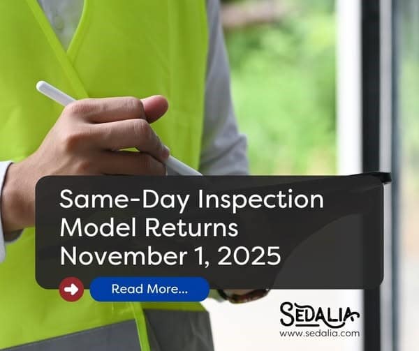We are pleased to announce that, beginning November 1, 2025, the City of Sedalia will be reinstating its same-day inspection model to improve service and minimize project delays.