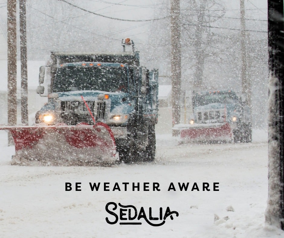 The City of Sedalia will continue monitoring conditions and will share updates as needed. Your cooperation helps keep streets passable, emergency services accessible, and our community safe. Please stay weather-aware, take precautions, and look out for one another as winter conditions move into the area.