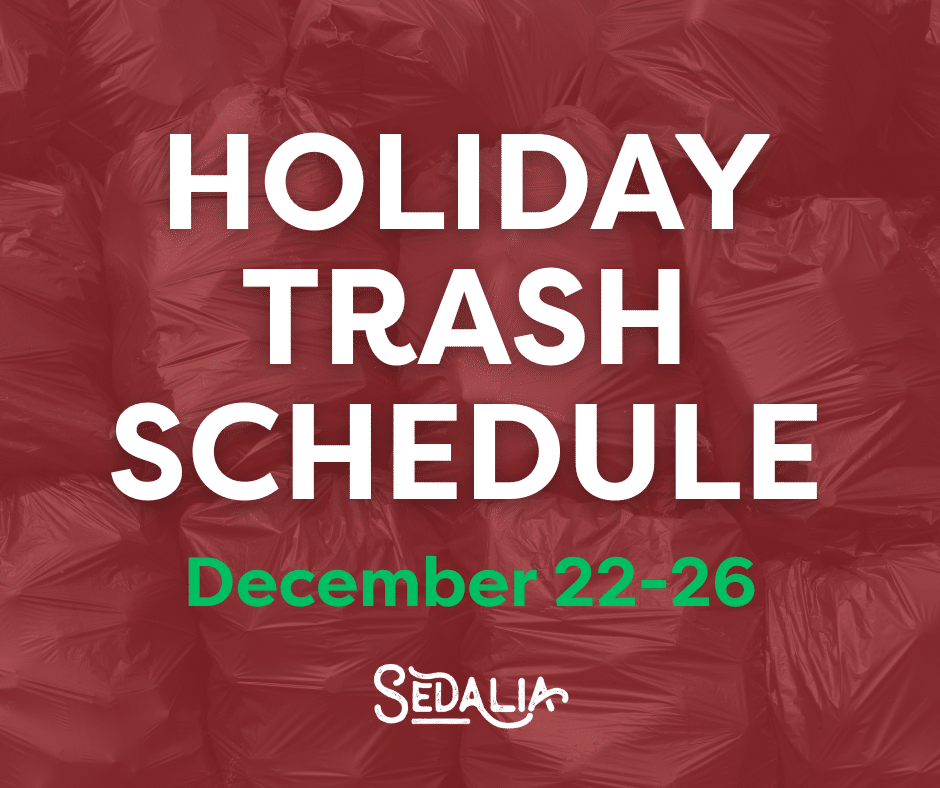 The City of Sedalia’s Public Works Operations Department is announcing an updated residential trash pickup schedule for Christmas week. This schedule differs from what was originally published on the annual calendar and flyers.